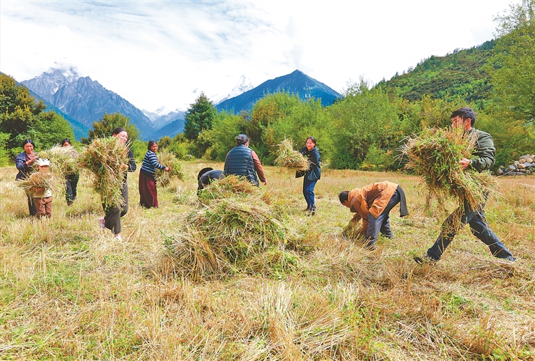 林芝市工布江达县错高乡结巴村村民秋收场景。记者 白玛泽旺 次仁平措 摄