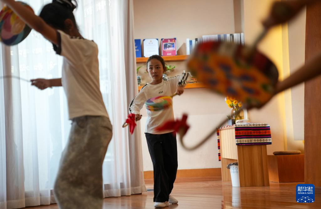 9月13日,在拉萨市塔耶梅朵美育培养中心,孩子们在练习热巴舞。新华社记者 晋美多吉 摄