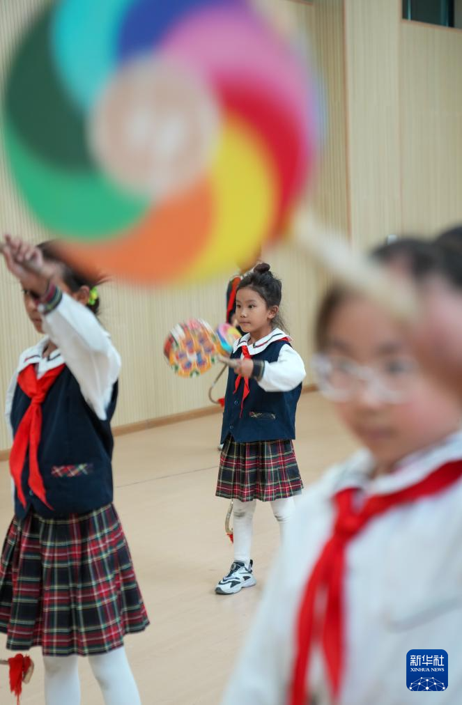 9月11日,在拉萨市实验小学,孩子们在练习热巴舞。新华社记者 晋美多吉 摄